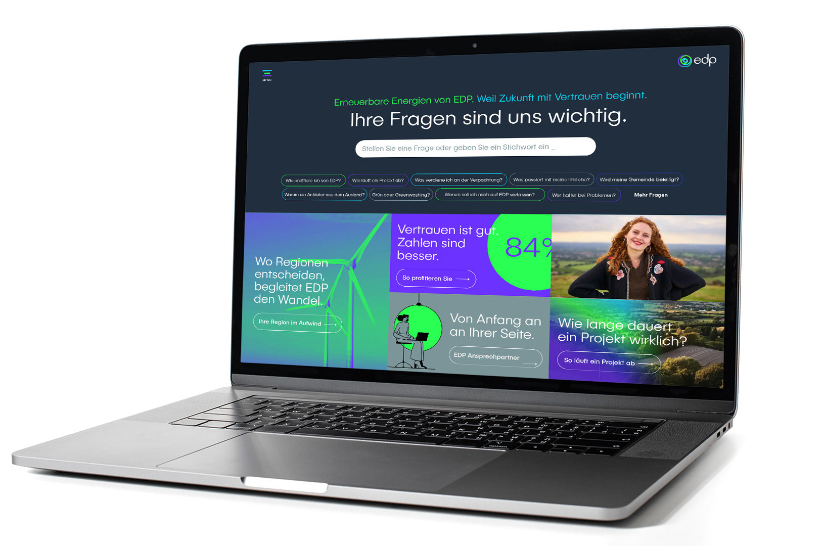 Im Mittelpunkt von EDP, dem weltweit drittgrößten Anbieter Erneuerbarer Energien, steht ein klares Bekenntnis: »We choose earth«. Um diesen Kern herum entfaltet sich die strategische Idee »CHOICES« – sie eröffnet Raum für Handeln, Dialog und Wirkung, verbindet die globale Denkweise von EDP mit lokaler Wirkung an deutschen Standorten und verwandelt den globalen Slogan in eine lokal relevante Erzählung. Sie schafft eine starke Verbindung zwischen dem globalen Ziel von EDP und den spezifischen Bedürfnissen lokaler Stakeholder. Als neuer Akteur in Deutschland muss EDP von Grund auf Vertrauen aufbauen – durch Glaubwürdigkeit, menschenorientierte Kommunikation und starke Partnerschaften. Das Konzept stärkt echte Entscheidungsträger (Kommunen, Landbesitzer und Unternehmen) indem es ihre Rolle bei der Gestaltung einer nachhaltigen Zukunft und bei der Erzielung greifbarer wirtschaftlicher Erträge, lokalen Wachstums und gemeinsamen Erfolgs betont.
