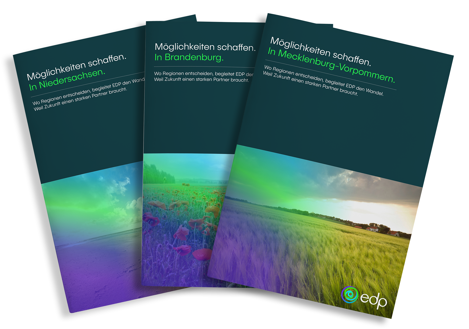 Jede Region ist unterschiedlich: eine Infobroschüre mit lokal ausgerichteten Titeln beleuchtet die Vorteile einer Zusammenarbeit mit EDP und geht auf die regionalen Differenzen offen und informativ ein.