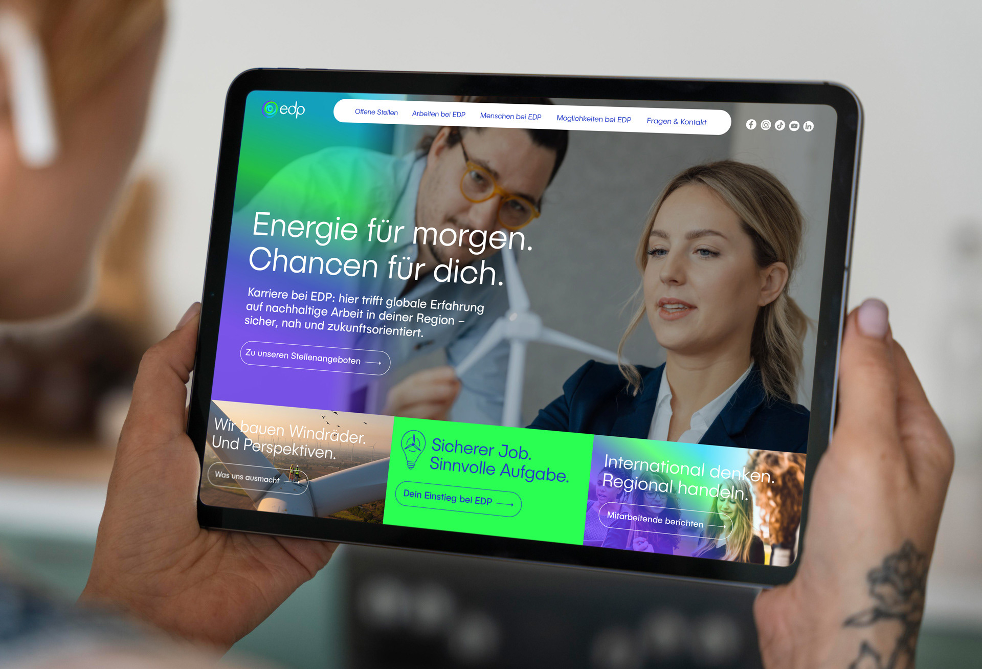 »Choices« bedeutet auch: neue Perspektiven für den Arbeitsmarkt. Um EDP als attraktiven und stabile Arbeitgeber in den Regionen zu positionieren, gilt es, vor allem bei jungen Menschen Vertrauen zu schaffen und ehrlich und glaubwürdig in Ansprache und Auswahl der Kommunikationsmaßnahmen zu sein.