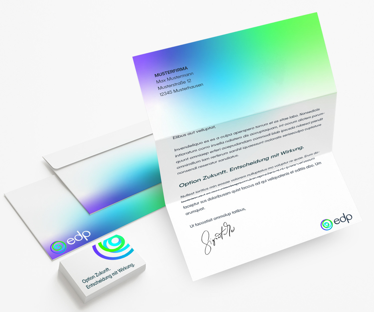 »Choices« ist ein kommunikativer Ansatz, der Werte und Handeln zusammenführt: Partizipation, Nachhaltigkeit, Wirkung. Visuell gestützt wird »Choices« durch eine Neuinterpretation von EDP's bestehendem Brand Design – als vielseitig einsetzbares Gestaltungsraster für sämtliche Kommunikationsfomate und als unverwechselbares visuelles Aushängeschild, das Innovation, Nachhaltigkeit und eine starke Markenpersönlichkeit transportiert.